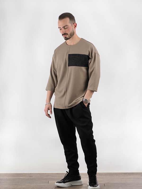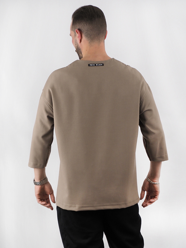 T-Shirt Oversized 3/4 Μανίκι Καφέ