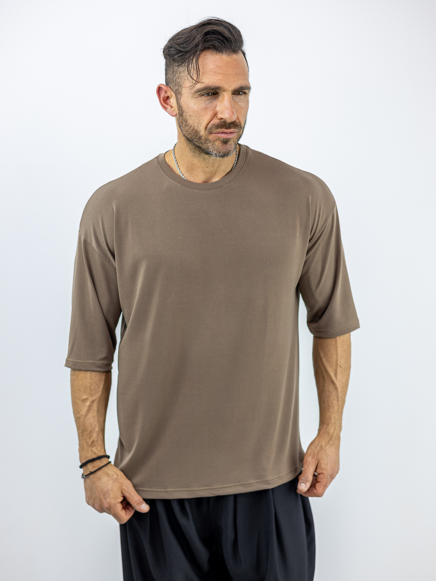 T-Shirt Oversized Mονόχρωμη Καφέ