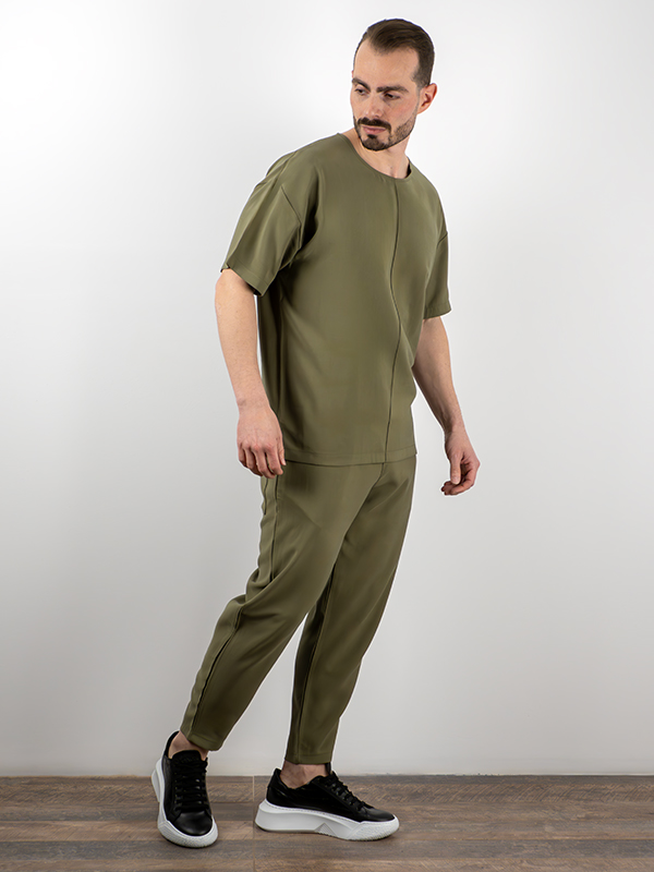 T-Shirt Oversized Μονόχρωμη με Ραφή Λαδί