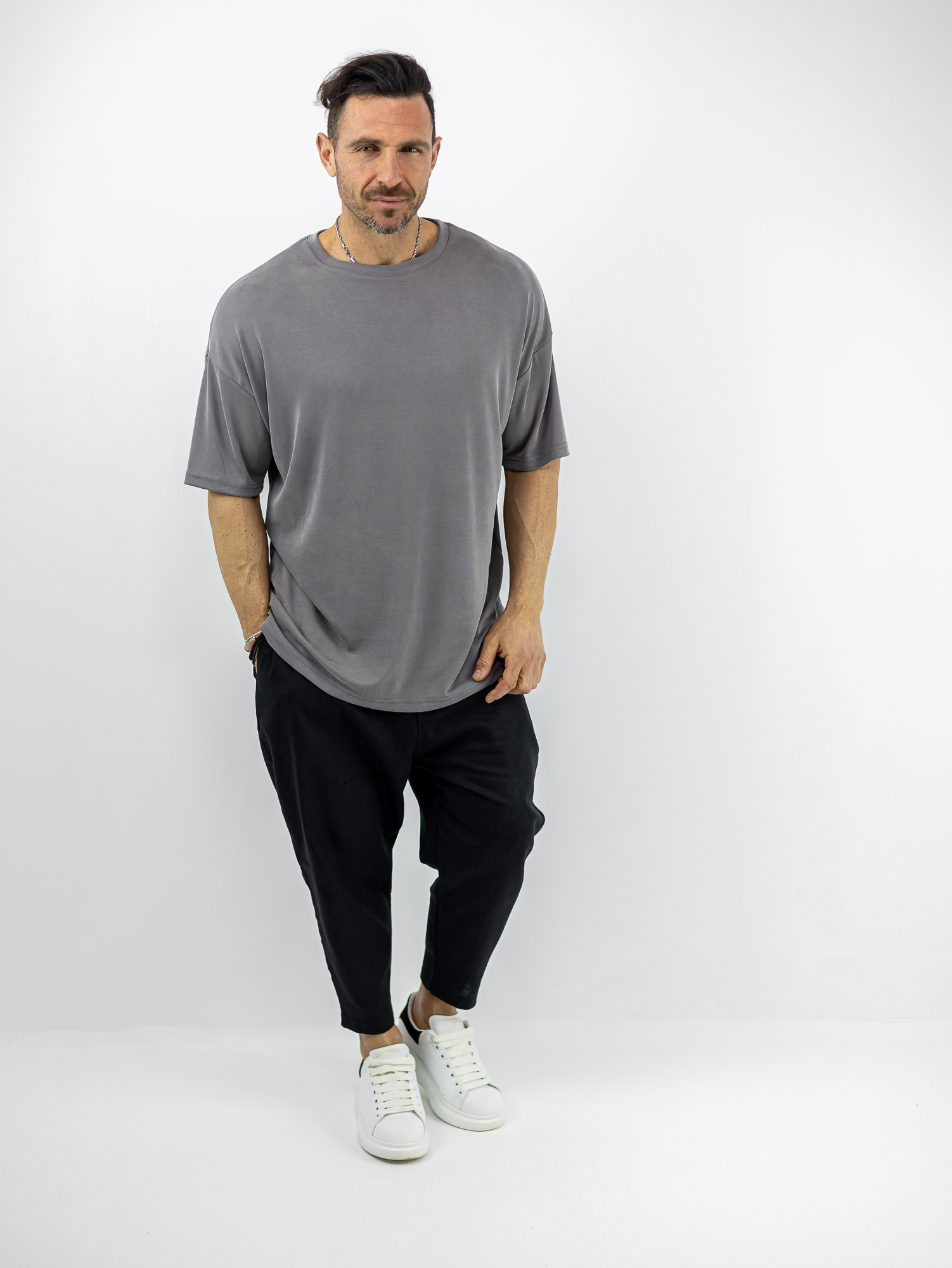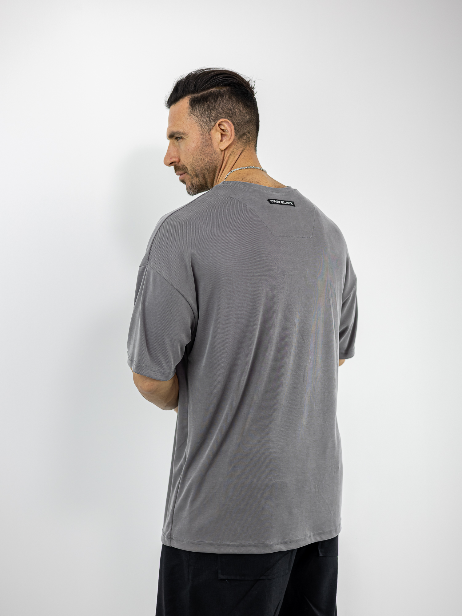 T-Shirt Οversized Μονόχρωμο Γκρί