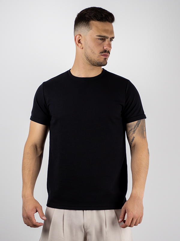 T-Shirt Slim Fit Mονόχρωμο Μαύρο
