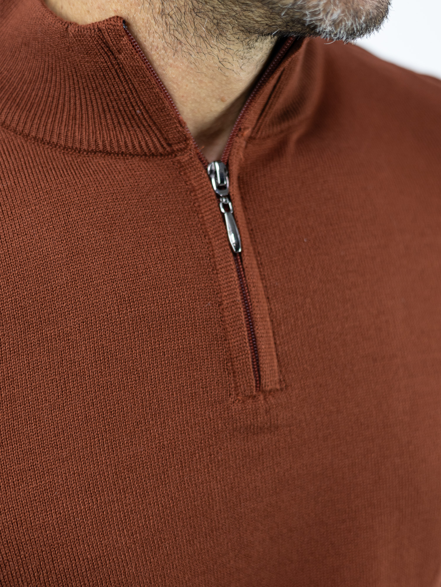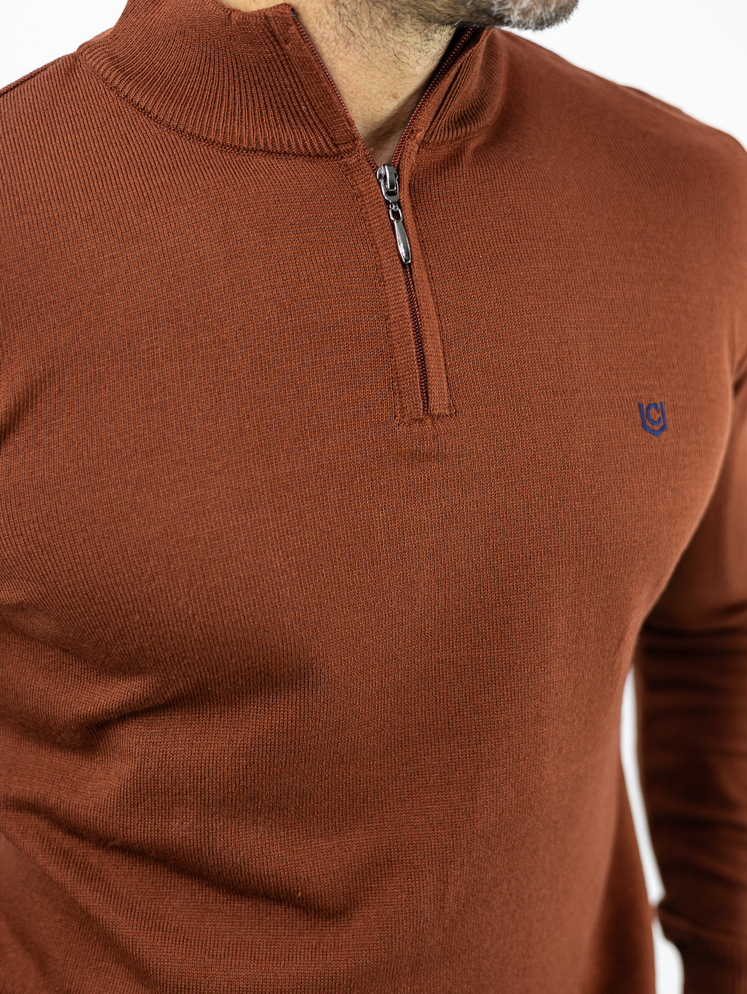 Μπλούζα Slim Fit Πλεκτή & Φερμουάρ Κεραμυδί
