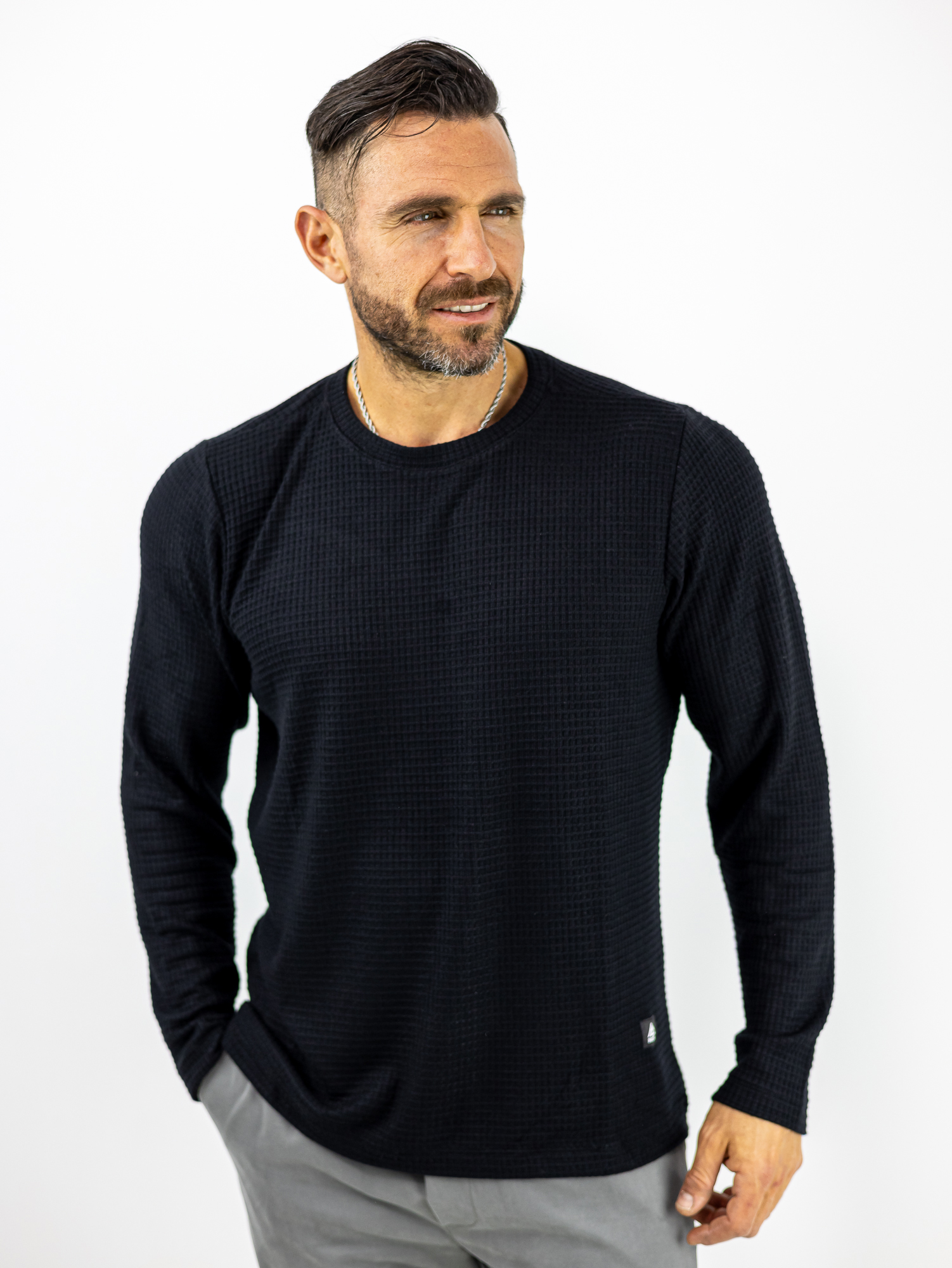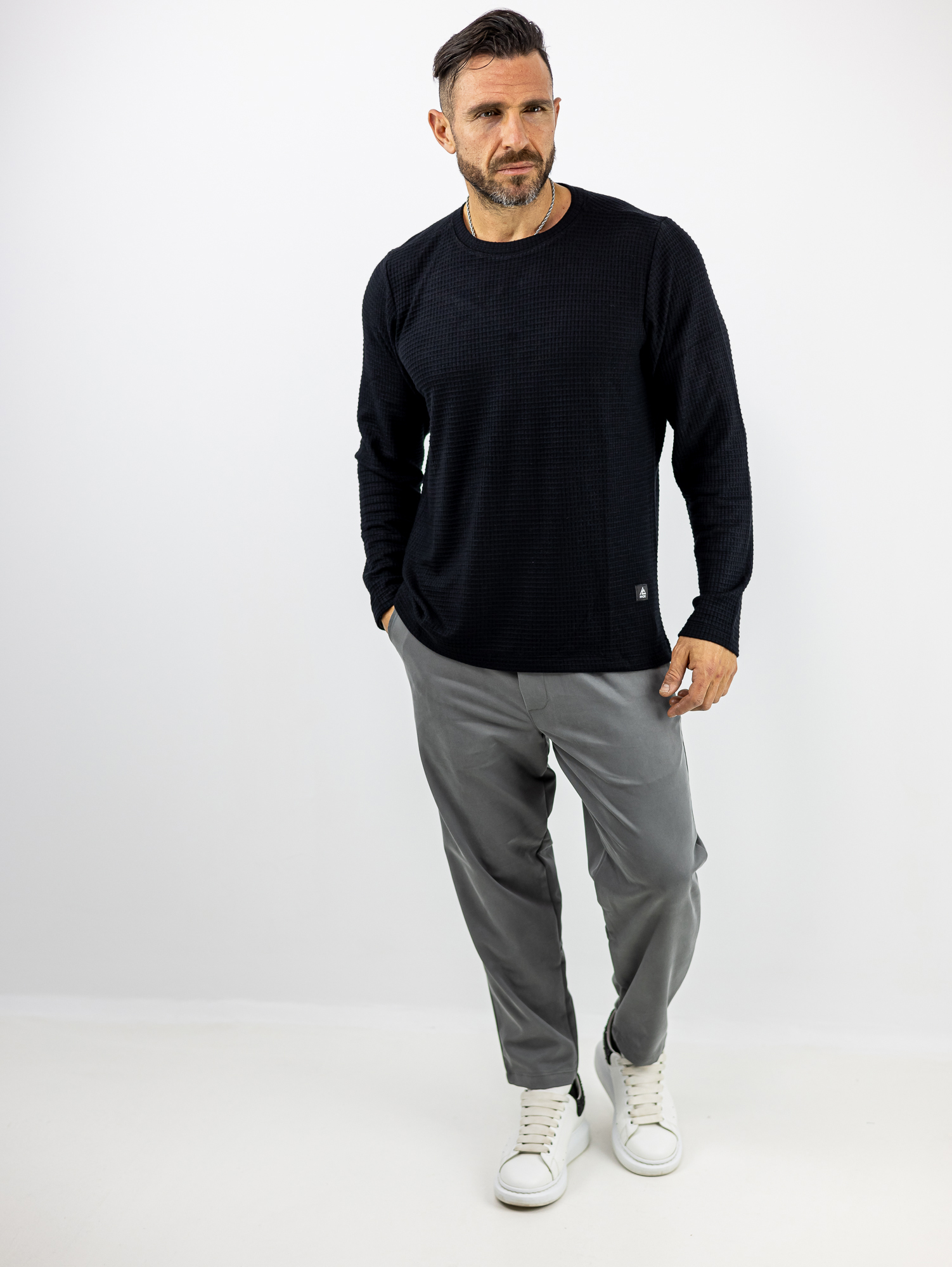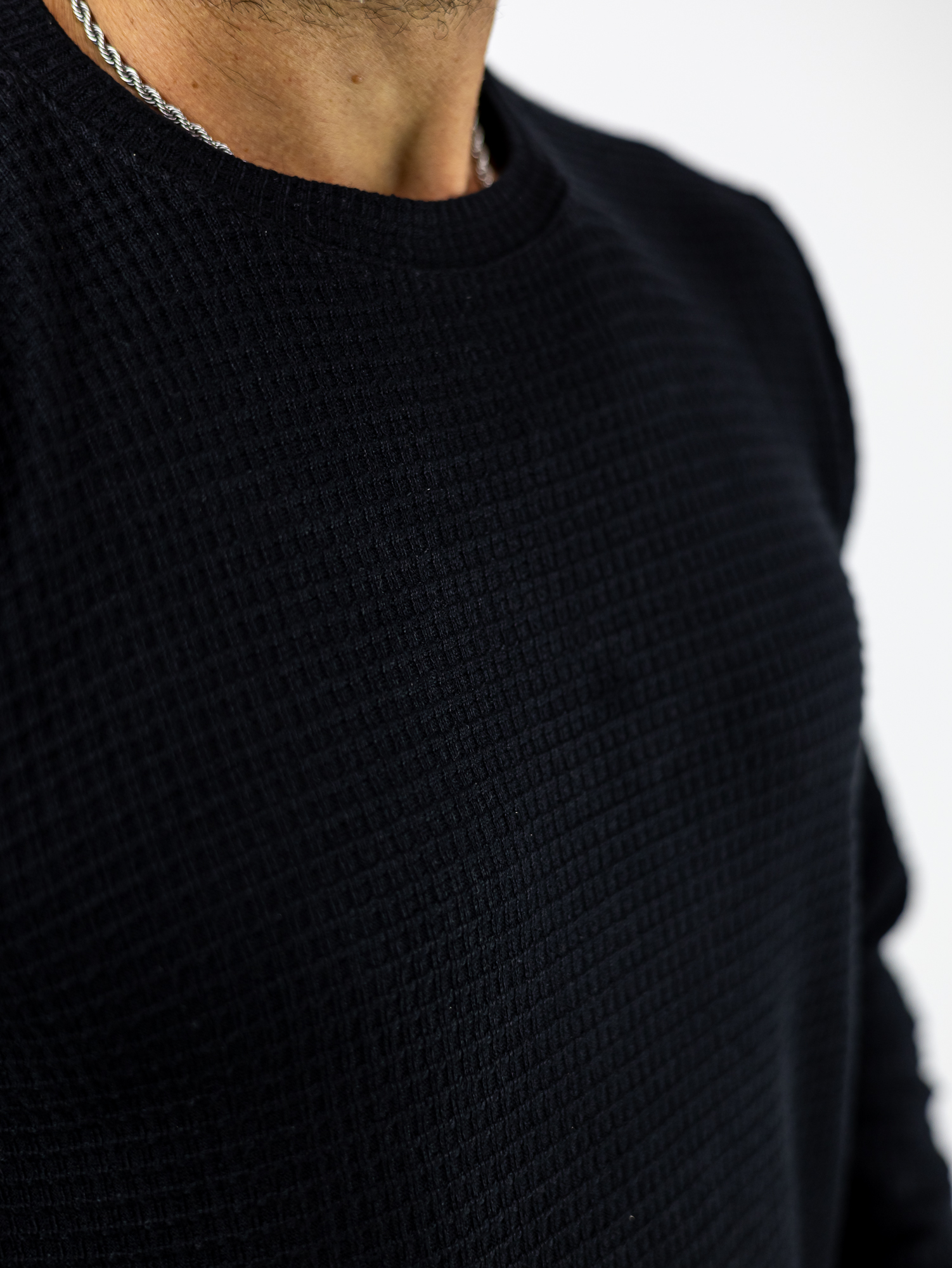 Μπλούζα Βάφλα Regular Fit Μαύρη