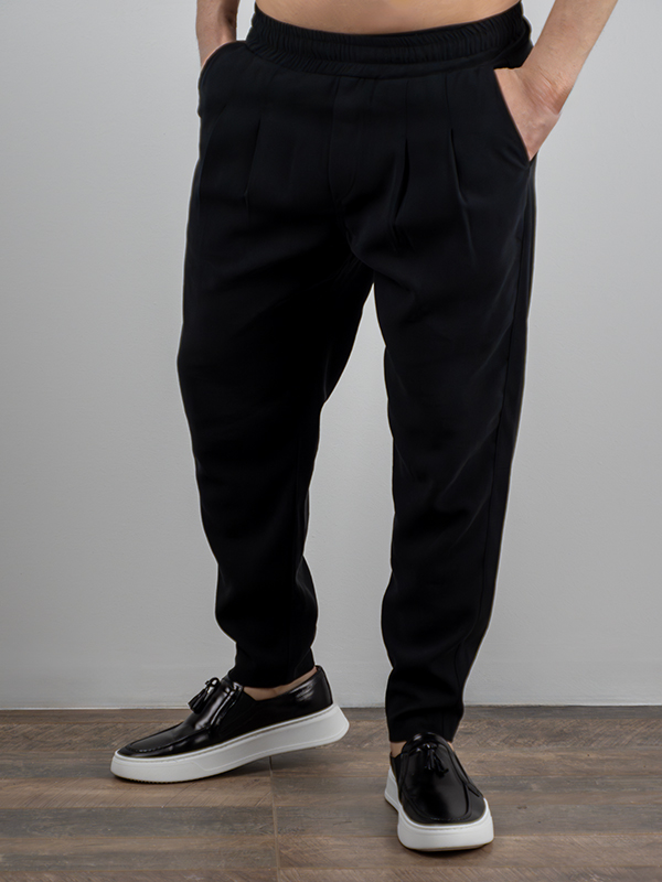 Παντελόνι Jogger Loose Fit Λινό Μαύρο