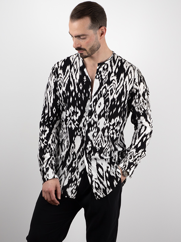 Πουκάμισο Oversized Με Μάο Γιακά Μαύρο