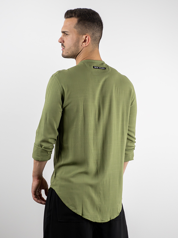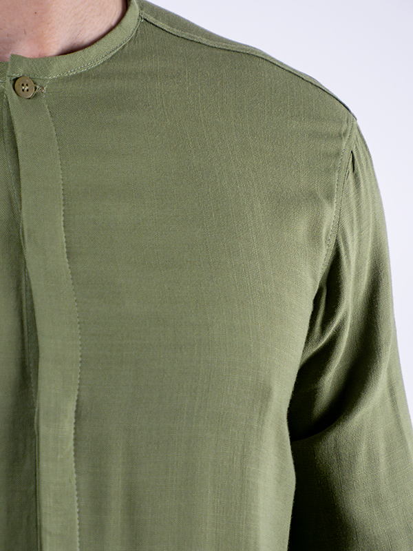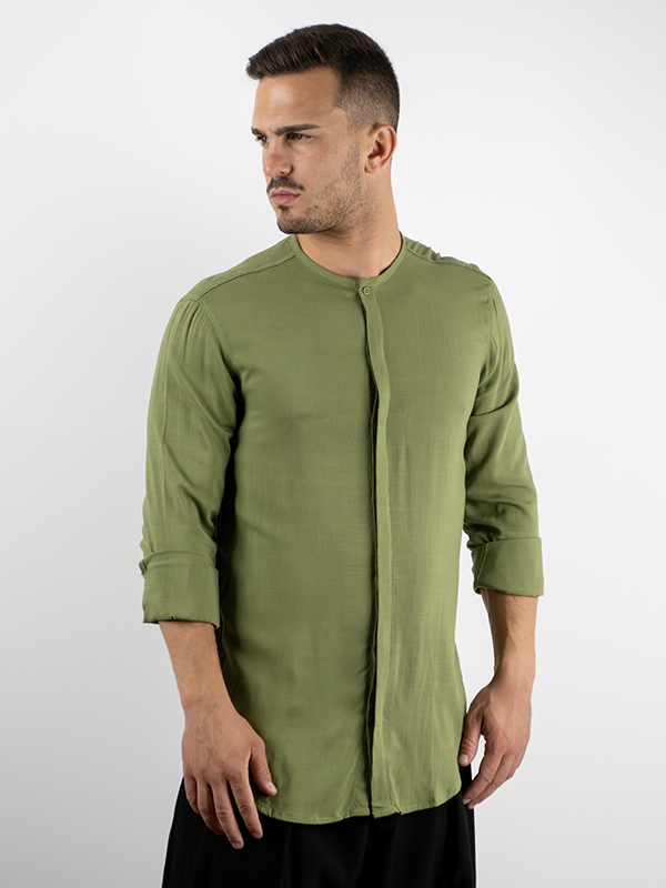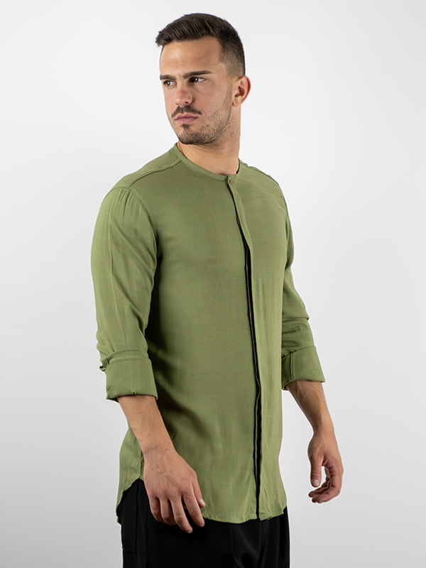 Πουκάμισο Με Γιακά Μάο & Κρυφή Τσέπη Μπέζ