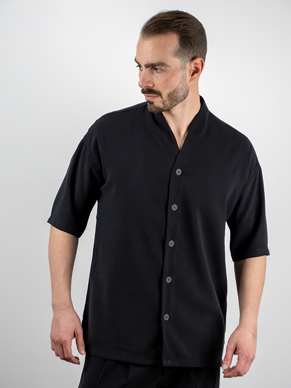 Πουκάμισο Loose Fit Neckless Μαύρο