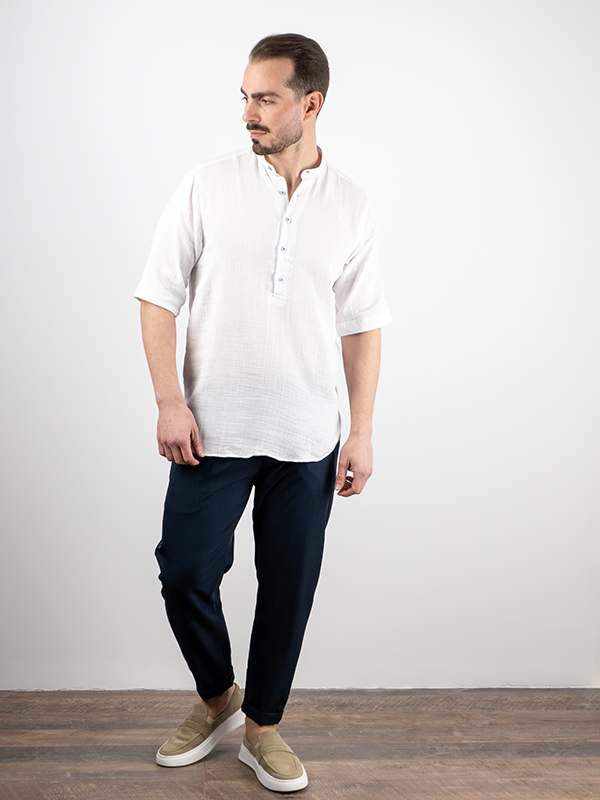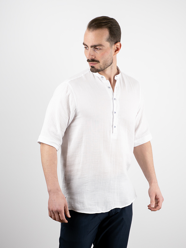 Πουκάμισο Overzised Με Μάο Γιακά Λευκό