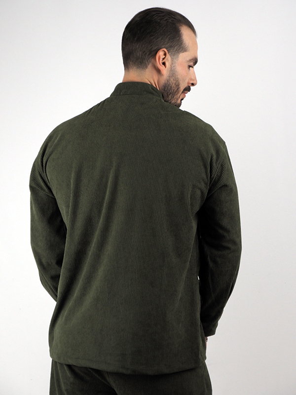 Πουκάμισο Regular Fit Mandarin Collar Λαδί