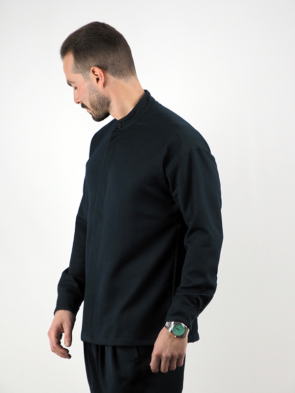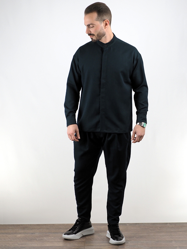 Πουκάμισο Regular Fit & Μάο Γιακά Μαύρο