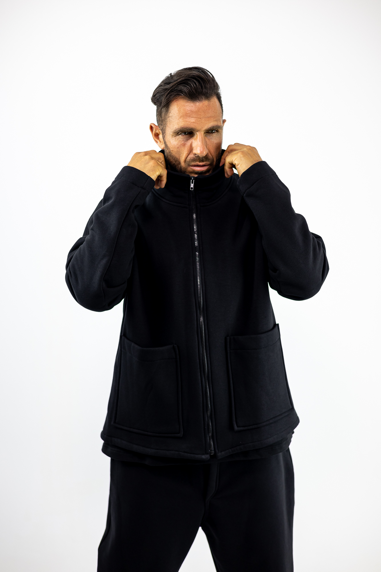 Ζακέτα Φούτερ Oversized Μονόχρωμη Μαύρη