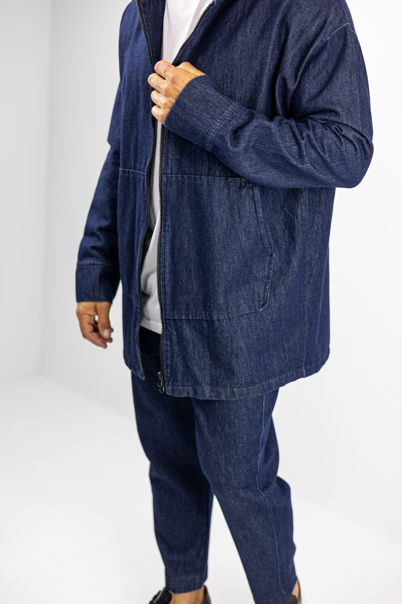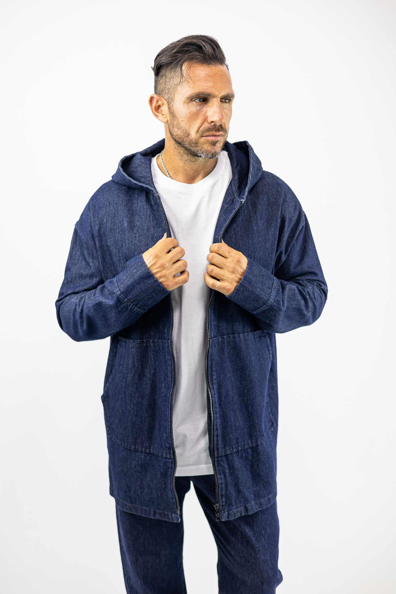 Ζακέτα Jean Oversized Μονόχρωμη με κουκούλα Μπλέ