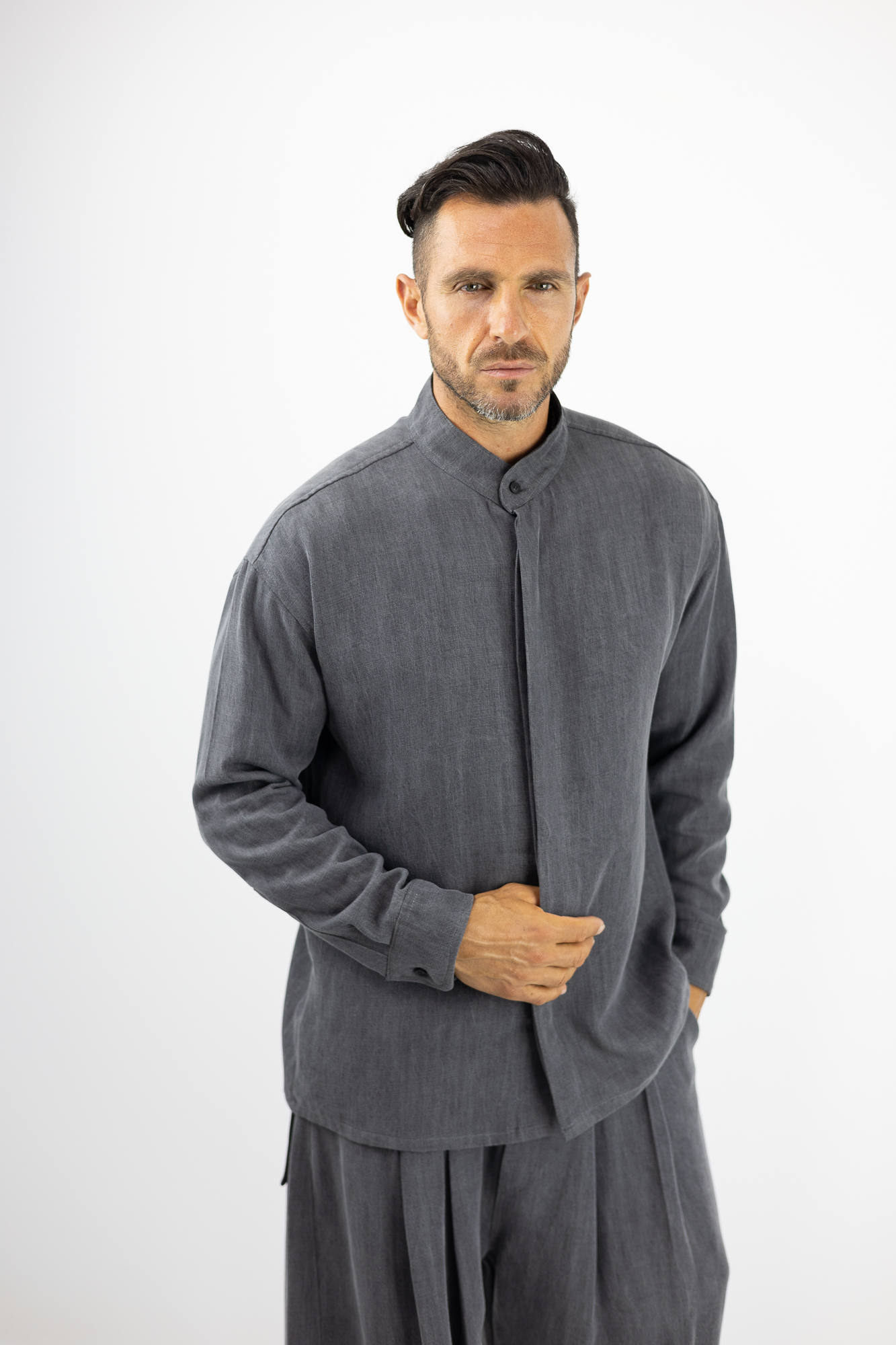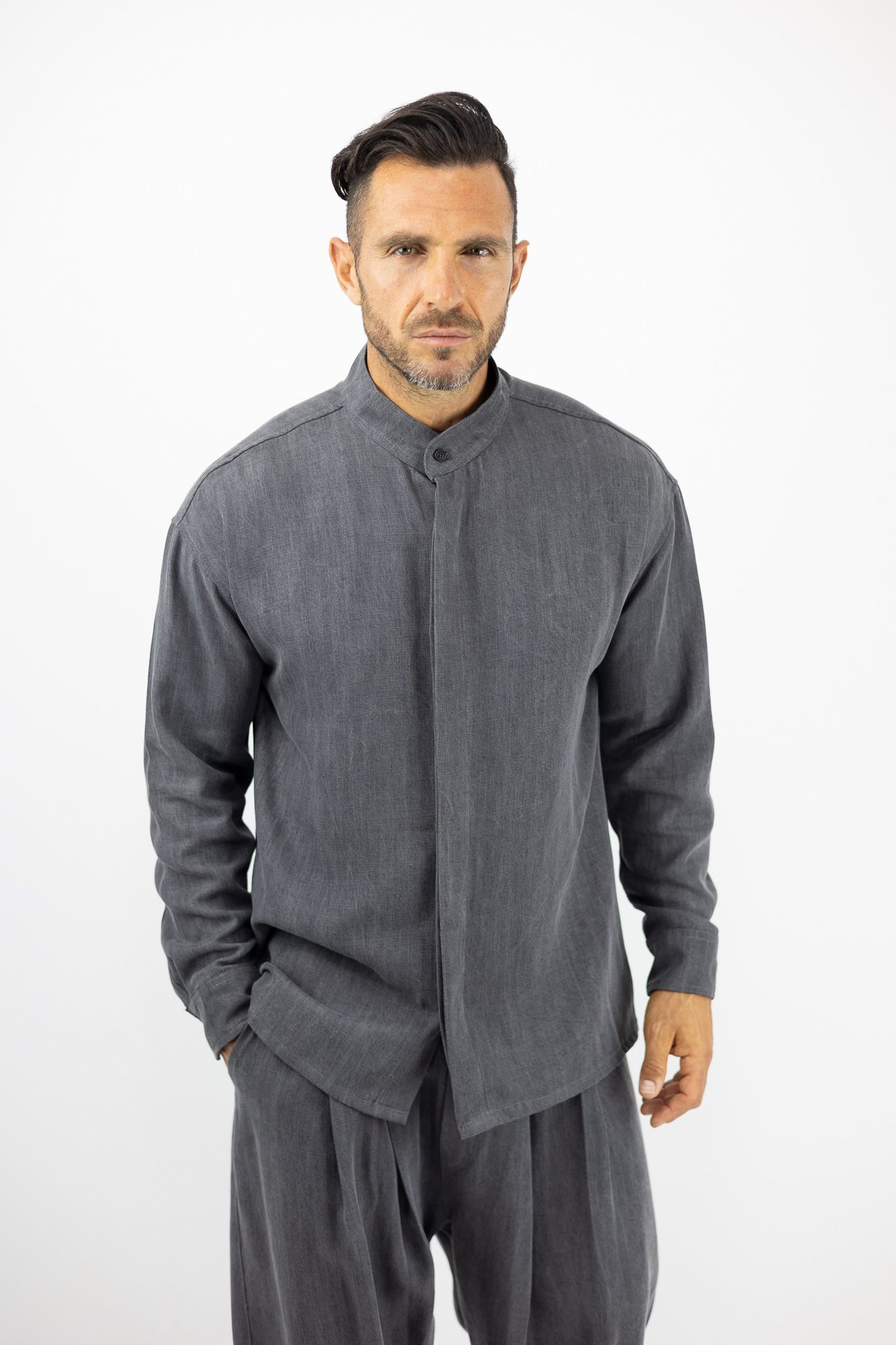 Jean Πουκάμισο Loose Fit & κρυφή πατιλέτα Γκρί