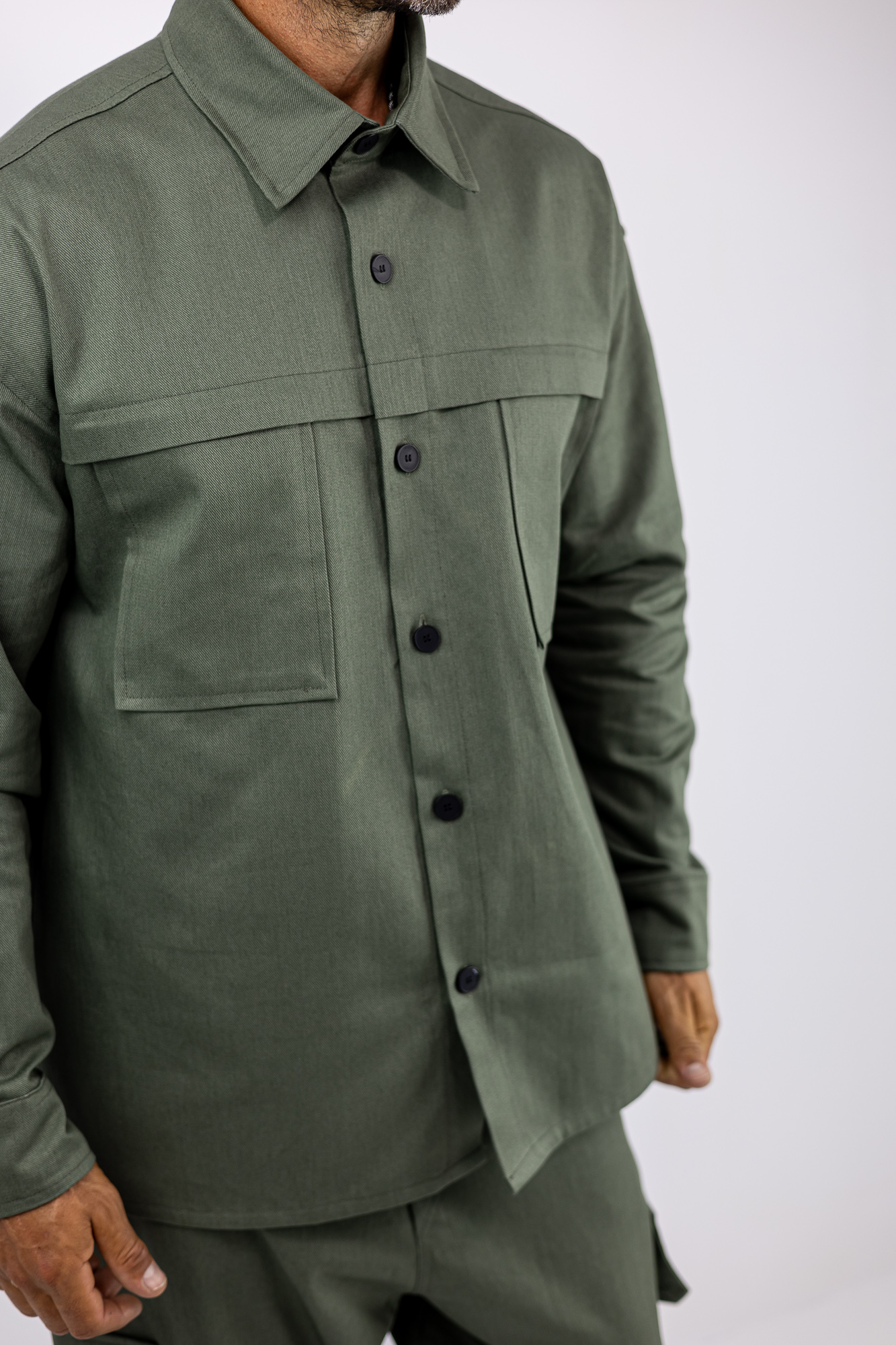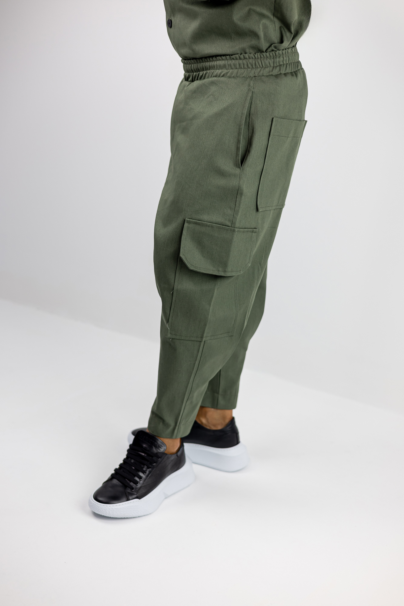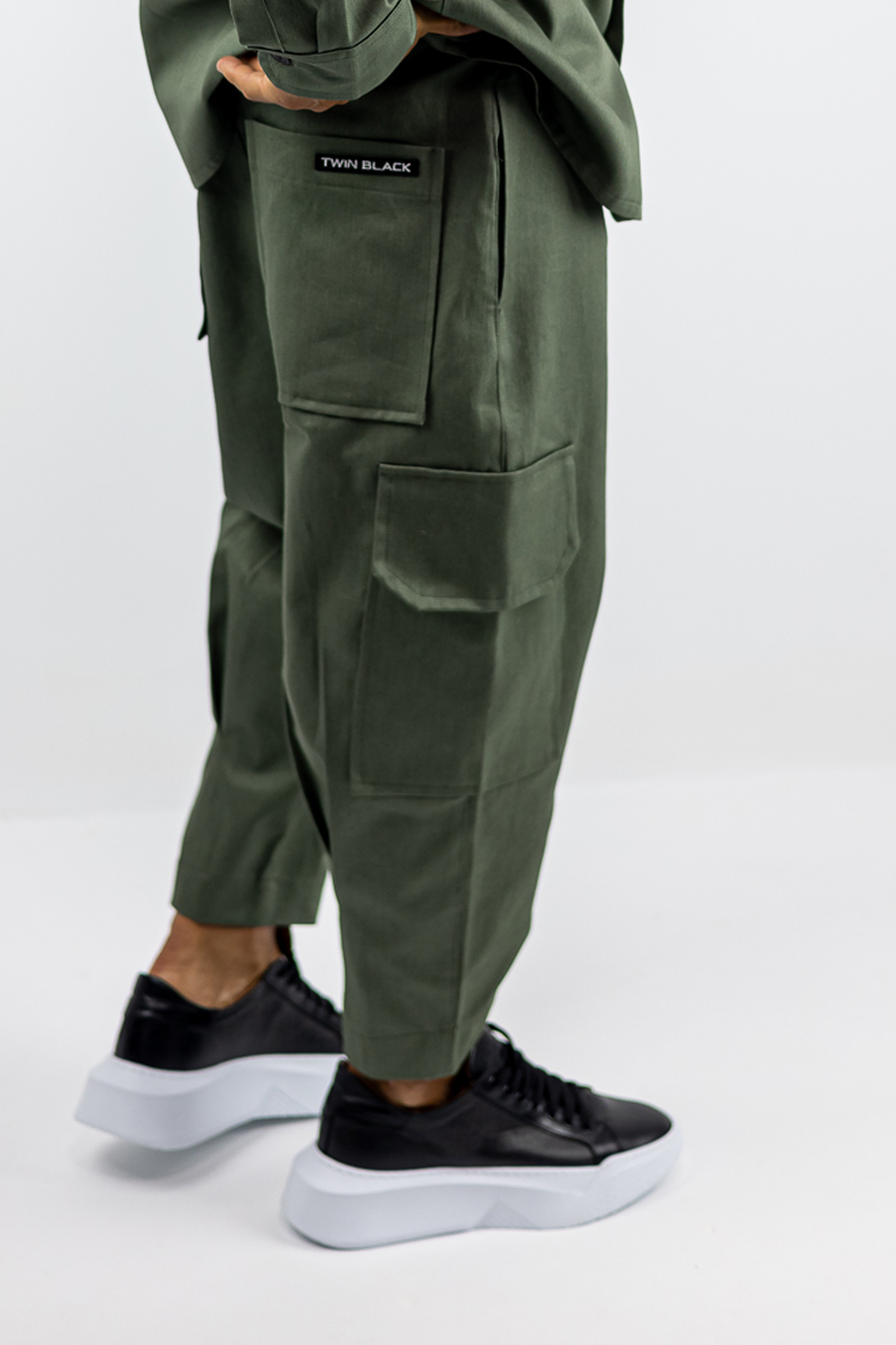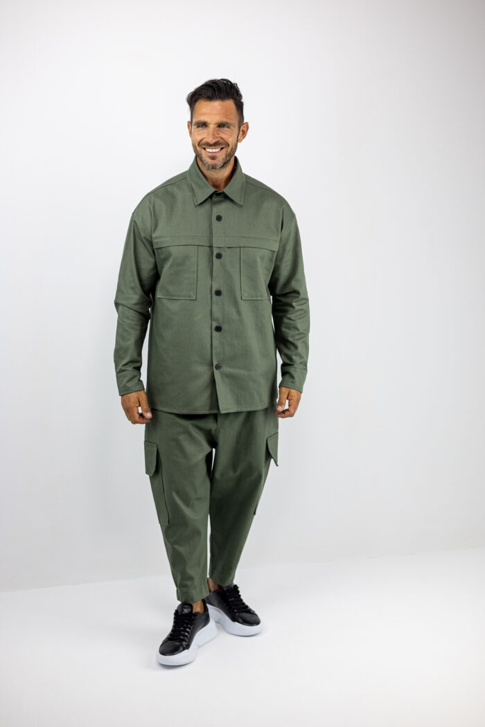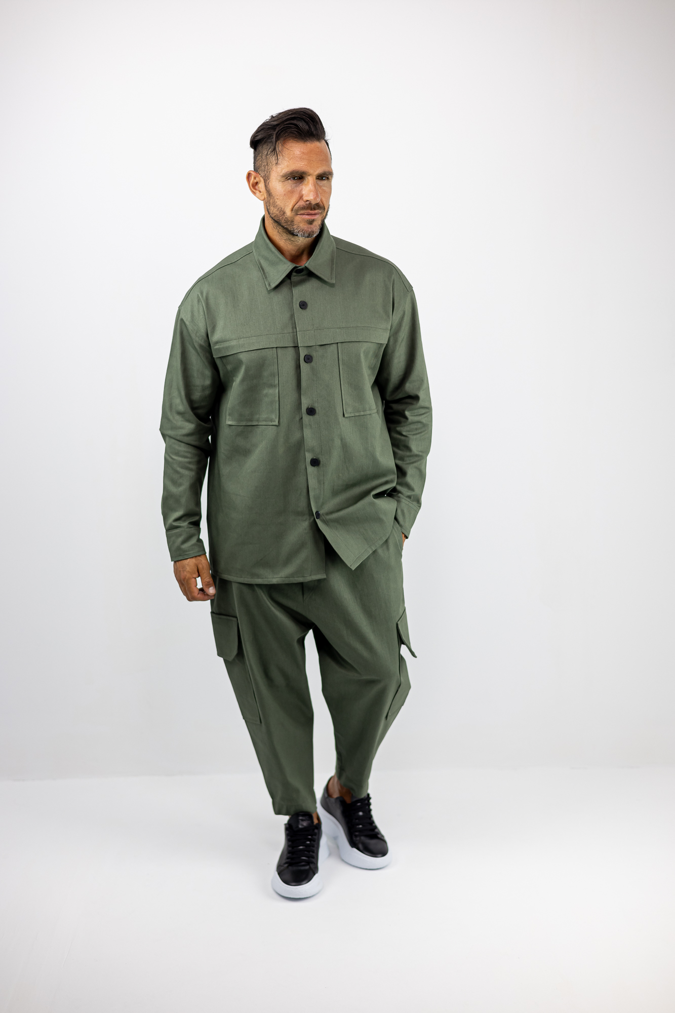 Παντελόνι Cargo Balloon & Πουκάμισο Oversized Λαδί