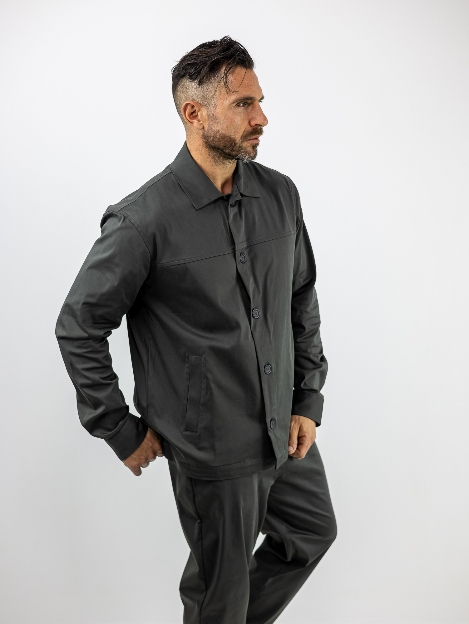 Παντελόνι Chinos & Λάστιχο Πισω & Overshirt Πουκάμισο Λαδί
