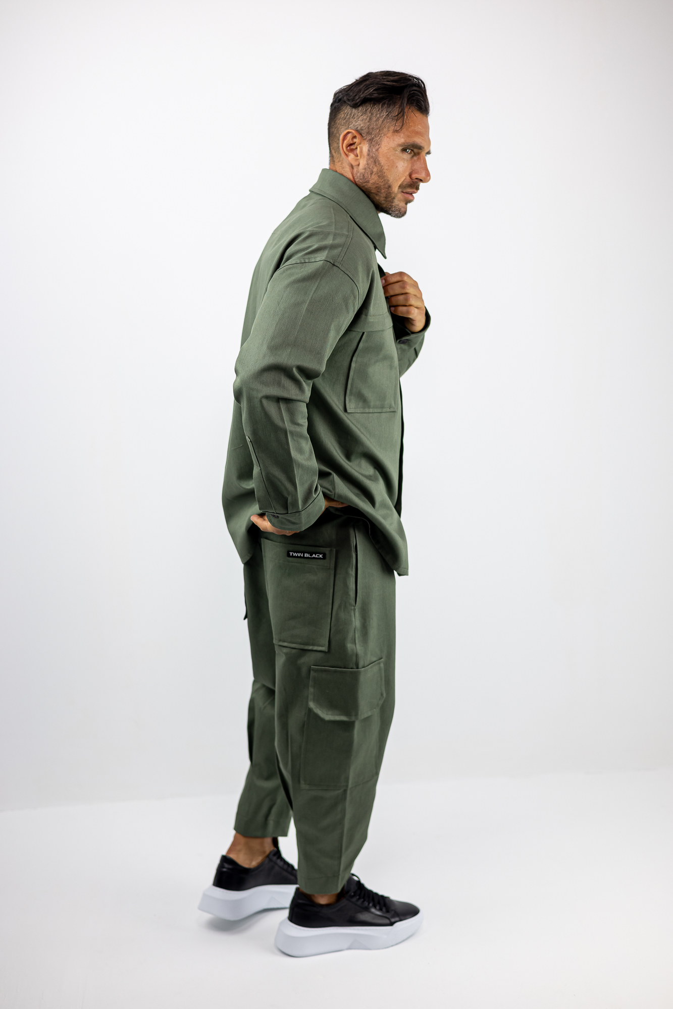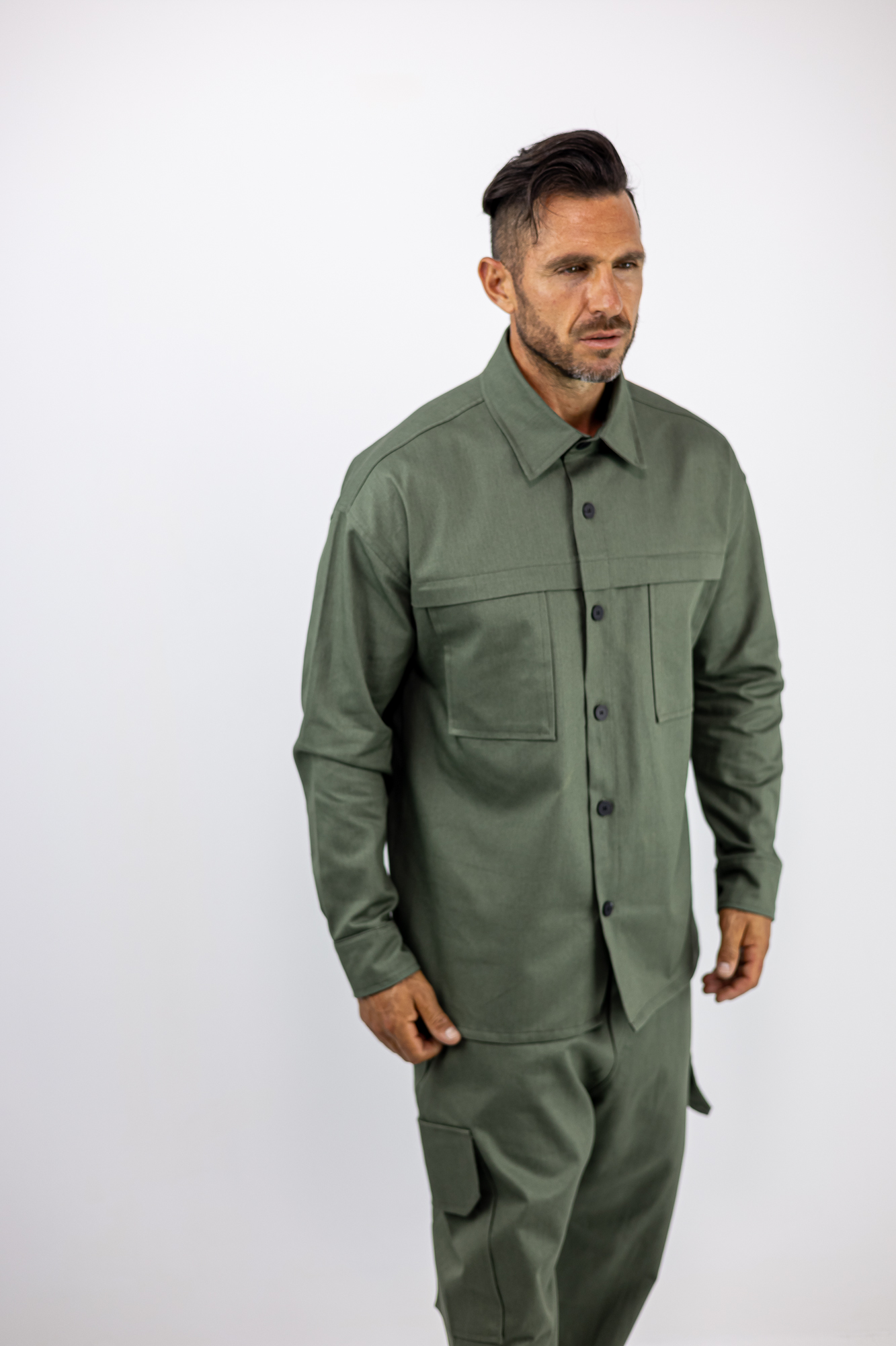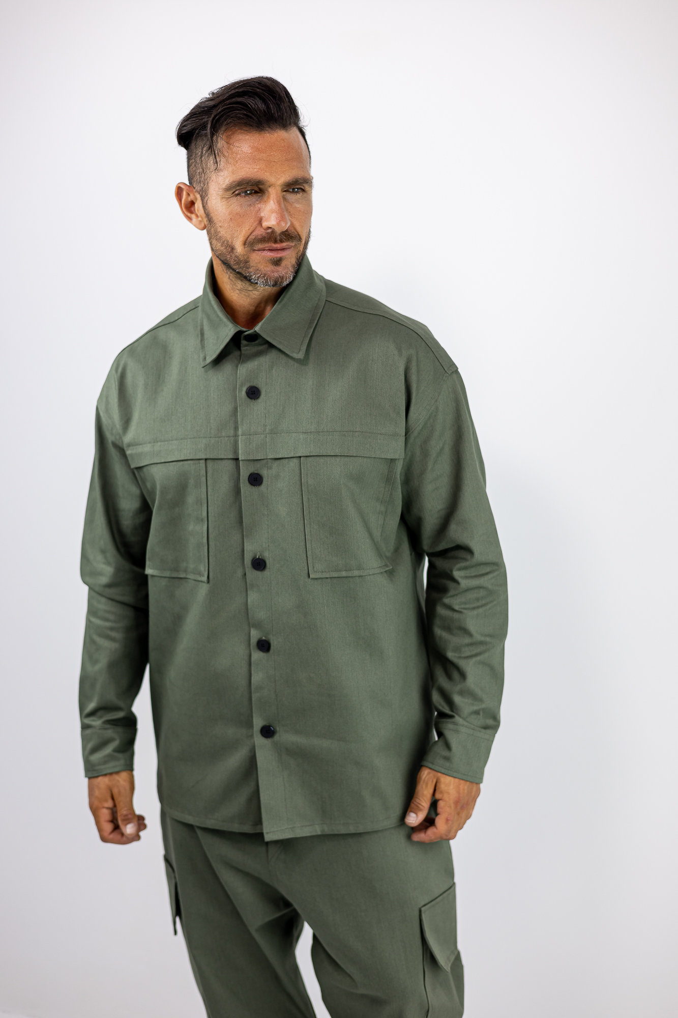 Πουκάμισο Oversized Μονόχρωμο Λαδί