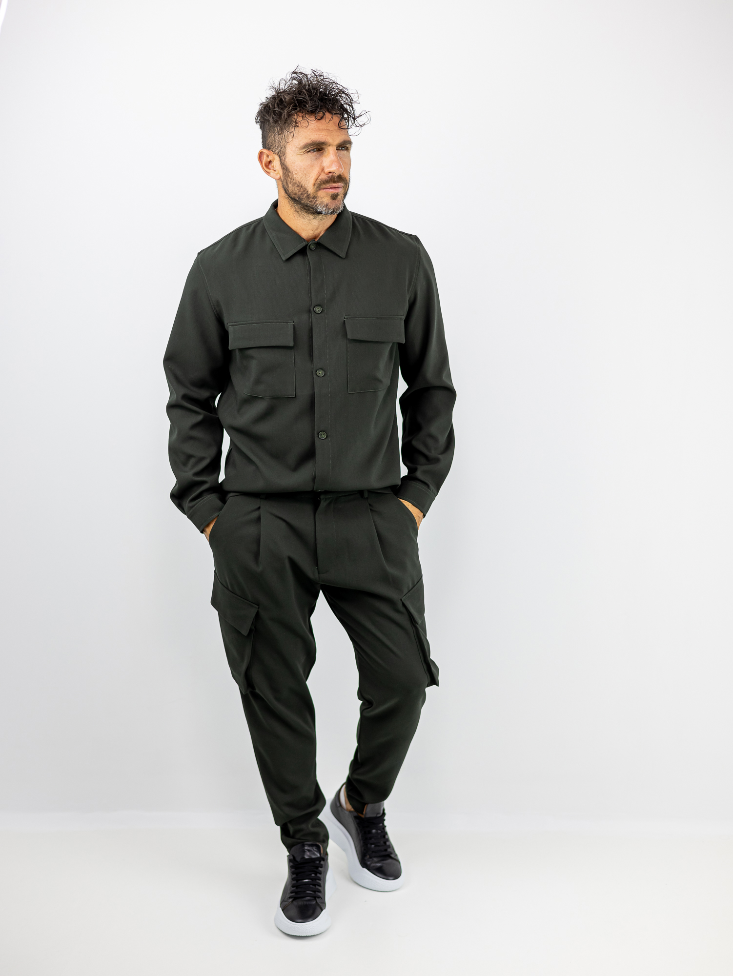Παντελόνι Cargo Army Set Μαύρο & Πουκάμισο Regular Fit Μαύρο
